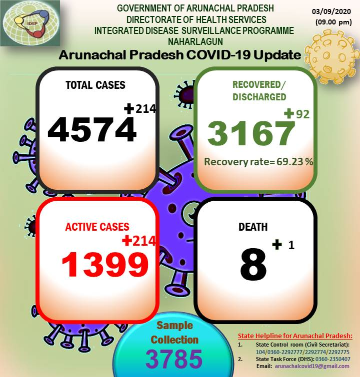 Ani On Twitter Arunachal Pradesh Reports 214 Covid 19 Cases 92 Discharges Taking Total Cases To 4 574 Including 3 167 Discharges And 8 Deaths State Health Department Https T Co Cx5fifbnaj